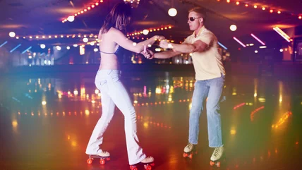 Before there was rollerblading, there were the glory days of roller skating. Picture it: the 1970s, disco, shag haircuts, halter tops, and roller rinks full of glittering disco balls, bumpin' music, and people in short-shorts sporting their slick roller skating skills. If you weren't around back then, you've probably caught glimpses of the scene in pop culture, like Madonna's "Sorry" music video, Heather Graham in "Boogie Nights," or even "The Crown" where Emma Corrin's Lady Diana roller skates through the palace.