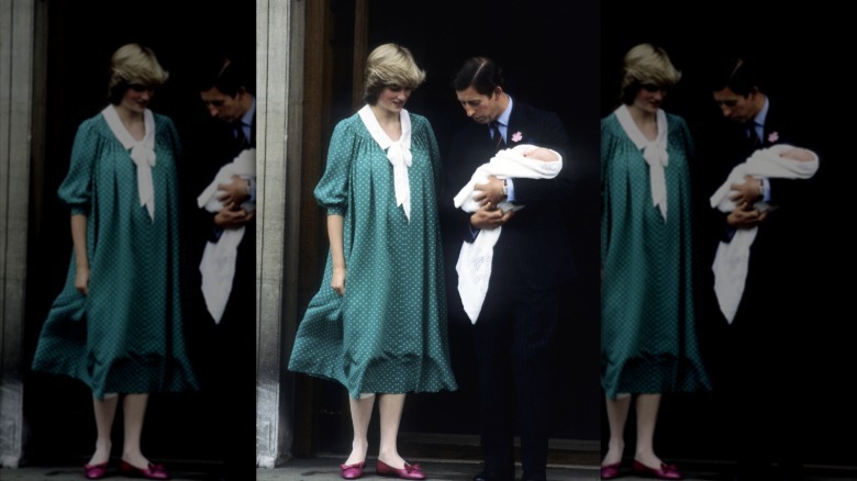 Of course, the Prince and Princess of Wales presented Prince George — future king of England — to the world outside the iconic Lindo Wing of St. Mary's Hospital in London, England, where Princess Diana had presented Princes William and Harry decades earlier. But Kate channeled her late mother-in-law by wearing a sky-blue polka-dot dress — a modern upgrade to the teal polka-dot frock Diana wore after having William in 1982.