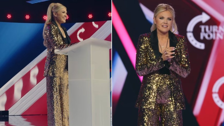 By now, Erika Kirk's fashion is known to be unexpected and often over-the-top. In fact, among Erika Kirk's outfits that were total flops, one sequin pantsuit in particular received quite a bit of attention. As the CEO and chairwoman of Turning Point USA, Kirk's appearance at the organization's AmericaFest conference in December 2025 was expected. However, what was not expected was her choice of attire.