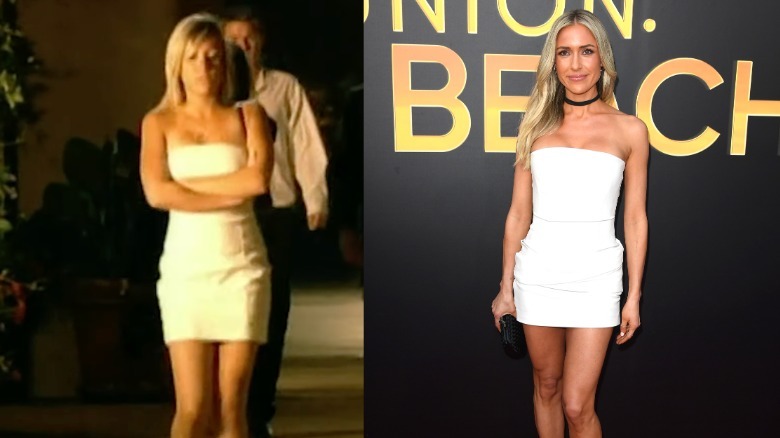 It's hard to tell that more than 20 years have passed since Cavallari was first seen in that white dress, as she has maintained her same petite figure to this day. Both instances highlighted Cavallari's long, tan legs. The only difference was her hair length, which is now in the form of longer beachy s-waves, and her choice of accessories. In '04, Cavallari outfitted the dress with a diamond heart necklace, while her modern pick was a black clutch and a chic Y2K choker necklace.