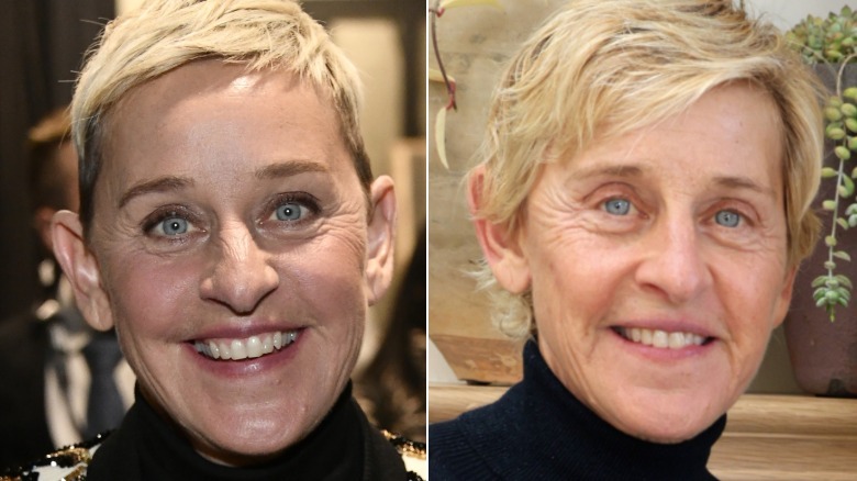 In September 2024, Ellen DeGeneres' Netflix comedy special debuted, with the former talk-show host mixing painful topics with comedy. The "Finding Dory" star was honest with fans about everything from being ousted from Hollywood following accusations of bullying on her eponymous show, to getting older. One topic in particular that had the Internet buzzing afterward was DeGeneres' revelation that she stopped doing injectables. "Hey, if I look older than when you saw me last it's because I'm older than when you saw me last," she told the crowd in "Ellen DeGeneres: For Your Approval" (via People). "And also I stopped doing Botox and filler." Looking at before-and-after pics, we can see the difference in the comedian's appearance.