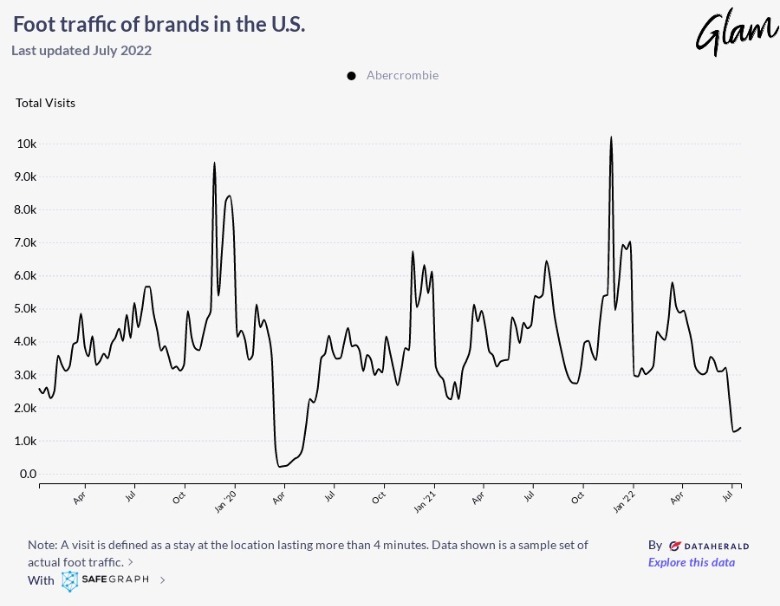 Of course, there are exceptions to every rule, and some savvy brands are proving their longevity with traffic statistics that buck the current norm. And in the realm of fashion retail, one such outlier appears with preppy favorite Abercrombie & Fitch.